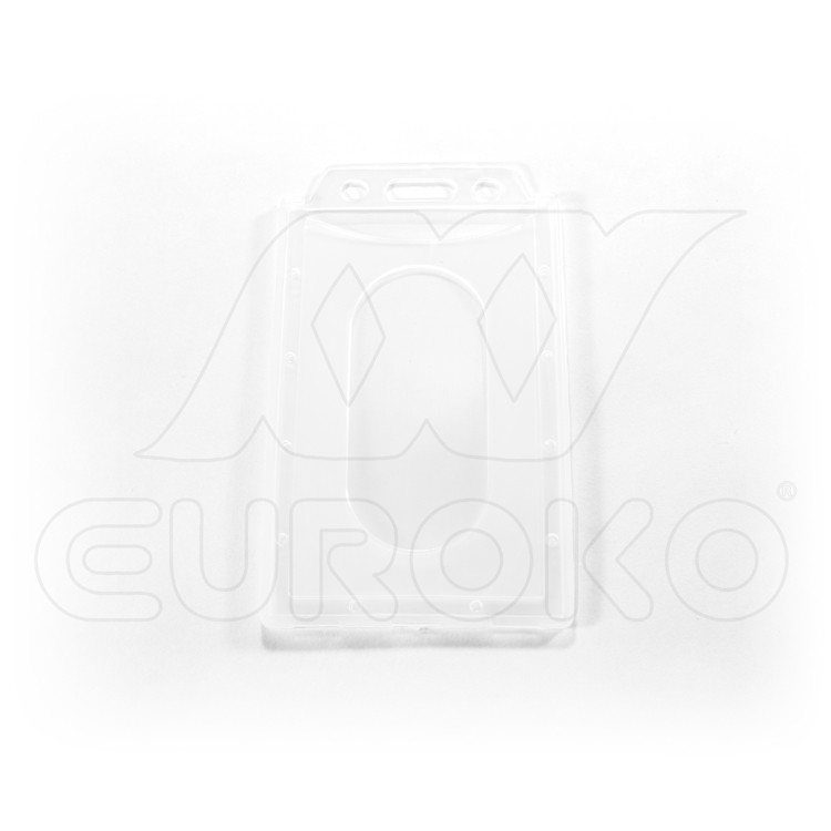 Diese Ausweihülle ist aus einem harten Polycarbonat in einem Hochformat.