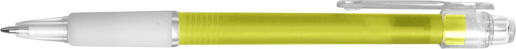 Günstiger Kugelschreiber direkt vom Euroko! Bestellen Sie einen effektiven Werbeartikel, der mit eigenem Druck produziert wird. Schicker Kugelschreiber mit transparenter Plastik Klemme und mit einer Gummi Einlage, die für das bequeme Schreiben sorgt.