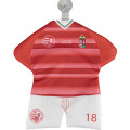 Scopri il gadget perfetto per ogni tifoso: la mini maglia auto personalizzata che unisce passione sportiva e praticità quotidiana! Questa replica in miniatura di autentiche maglie da calcio è realizzata in morbido poliestere con stampa sublimatica a colori completi su entrambi i lati, garantendo una riproduzione fedele di ogni dettaglio originale. Grazie alla ventosa inclusa, puoi appenderla allo specchietto retrovisore della tua auto, alle finestre, agli specchi o su qualsiasi superficie liscia, trasformandola in un accessorio decorativo versatile per auto, casa o ufficio.