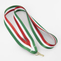 I nostri nastri per medaglie predefiniti rappresentano la soluzione ideale quando necessitate di cordini professionali con consegna rapida e un eccellente rapporto qualità-prezzo. Questi nastri da collo larghi 25mm sono pre-prodotti con 15 design universali disponibili immediatamente a magazzino, con consegna tipica in 2-5 giorni lavorativi. Realizzati in poliestere lucido di alta qualità e dotati di anello metallico (moschettone) per un facile aggancio delle medaglie, offrono una soluzione completa e pronta all'uso per eventi sportivi, premiazioni scolastiche e cerimonie aziendali.